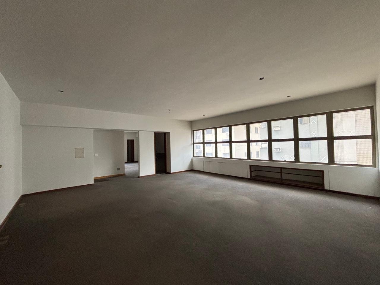 Excelente andar corrido, são 273m² de área com banheiros, copa, vão livre com ponto para ar condicionado, iluminação e carpete, 5 vagas. Prédio com 2 elevadores, portaria física e segurança.