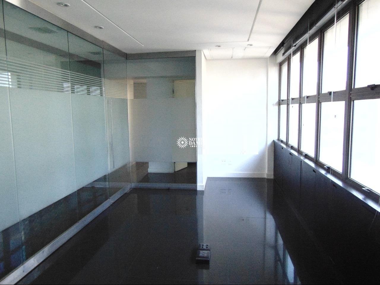 Prédio comercial de alto luxo, localização privilegiada, 100% revestido em granito e aço inox, 3 elevadores, porteiro 24 horas, sistema de segurança com circuito interno de TV e controle de acesso eletrônico, hall social decorado com piso em granito, 5 vagas de garagem cobertas. Andar corrido imenso com 273m², composto por 10 salas integradas, piso em granito, laminado ou carpete, rebaixamento de teto com iluminação instalada, instalação para ar condicionado, 10 banheiros, 1 copa e cozinha.