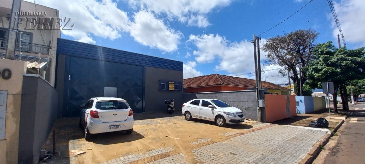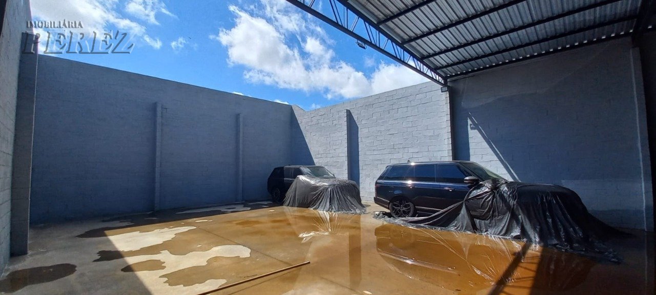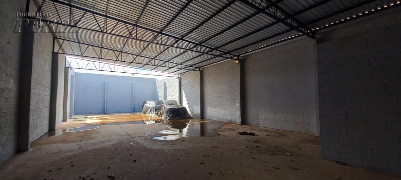 Barracão com 390,5m² de terreno e 300m² de construção, com pé direito de 5 metros e piso reforçado. Conta com dois banheiros, uma copa e estacionamento frontal para quatro carros, oferecendo funcionalidade e praticidade para diferentes tipos de negócios.