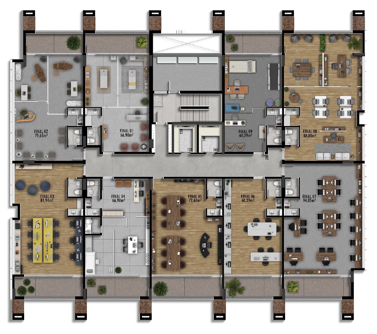 Incorporar a sustentabilidade, acessibilidade e a conexão dentro do rigor estético e da arquitetura funcional, é apenas a porta de entrada para o empreendimento que você estava esperando para materializar cada uma de suas conquistas. Pessoas que dão significado aos lugares, encontros e contam suas vidas através do talento, determinação e, acima de tudo, de seu trabalho. Localizado em uma das ruas mais charmosas de Curitiba, o projeto surge como uma iniciativa inédita e incomparável que transforma o cenário urbano repleto de muitas facilidades e serviços que otimizam sua rotina. Este é um endereço que reflete o melhor de quem você é, colocando suas realizações em destaque, onde elas merecem estar. CONJUNTO: CONJUNTOS TIPO: - 66,98m2 de área privativa; - 2,80m de pé direito; - Sacada privativa coberta; - 1 vaga de estacionamento; - Rebaixo de 18cm para piso elevado; - Infra para ar-condicionado; - Copa e lavabo; - Espera hidráulica e elétrica para instalações adicionais. CARACTERÍSTICAS: - 10 pavimentos, sendo 2 subsolos, térreo com pé direito duplo, 6 andares tipo e rooftop; - 4.850m2 de área privativa total, distribuídos em 60 conjuntos; - 114 vagas de garagem com capacidade para 123 veículos; - 2.180m2 de área de terreno com 40m de frente; - Praça frontal; - Porte-cochère; - Vagas externas para carros e motos (curta duração); - Controle e monitoramento condominial via smartphone; - Vidros duplos; - Gerador de energia para sistema de segurança; - 2 elevadores para 13 pessoas e 1 deles com dimensões para maca; - Térreo com pé direito duplo; - Sinal de internet em todas as áreas comuns, inclusive subsolo; - Copa para visitantes; - Lavabo com fraldário; - Espaço de convivência com gazebo externo; - Tratamento e reuso das águas pluviais; SUBSOLO: - 2 subsolos com exaustores para renovação de ar; - Hal de elevadores com controle de acesso e fino acabamento; - Bicicletário; - Tomadas para veículos e bicicletas elétricas; - Piso com pintura epóxi
