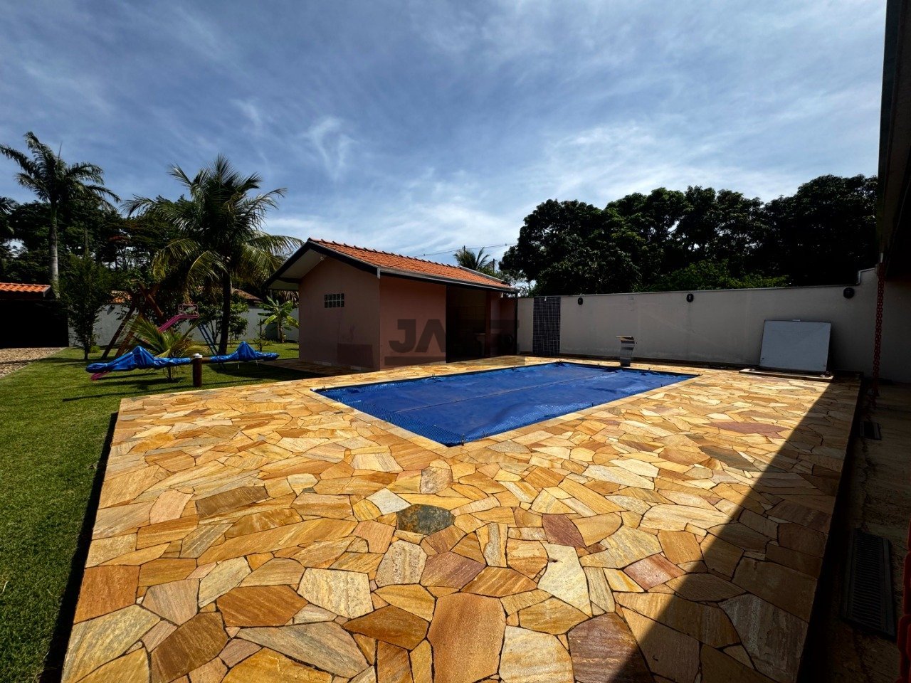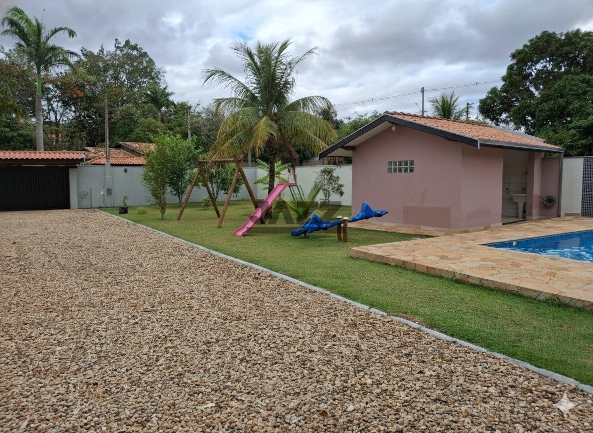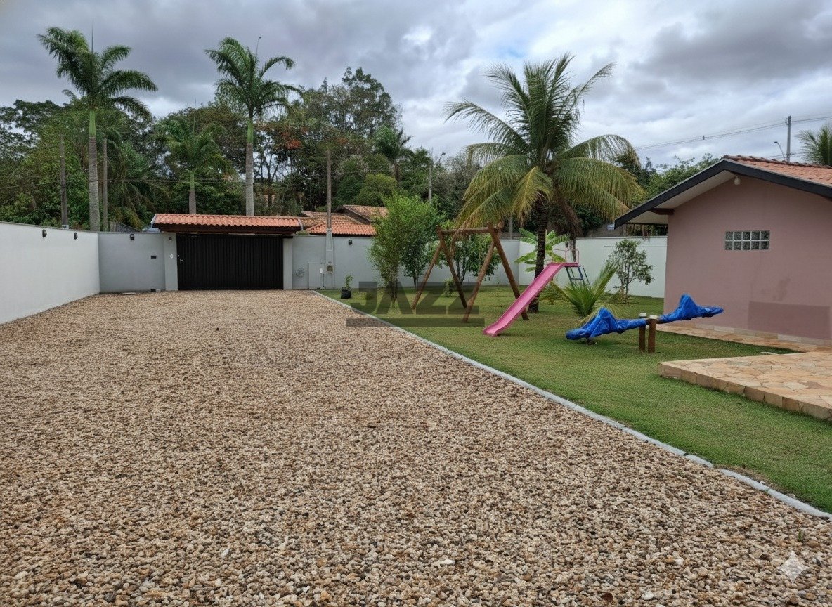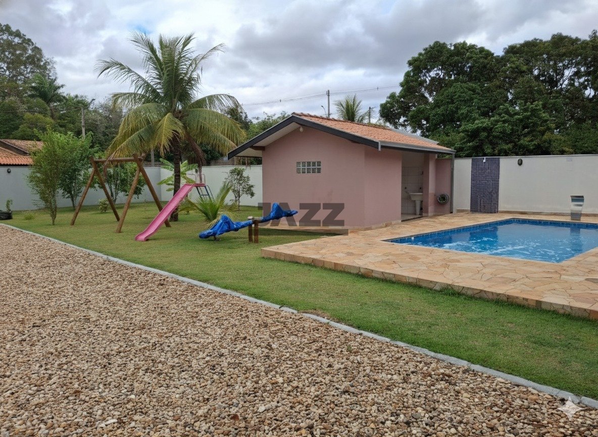 Esta chácara à venda em Santana tem 1.000m² de terreno e 211m² de área construída. Conta com dois quartos, dois banheiros, sala, área de serviço e seis vagas de garagem. O quintal é amplo e inclui uma área gourmet com churrasqueira, forno, fogão e fogão a lenha. Também possui piscina com aquecedor solar e parquinho. A propriedade tem água encanada, rede de esgoto, energia elétrica e internet. Fica em uma região com escolas, mercados e comércios próximos, o que facilita o dia a dia. É uma boa opção para quem busca espaço e estrutura em um lugar tranquilo.