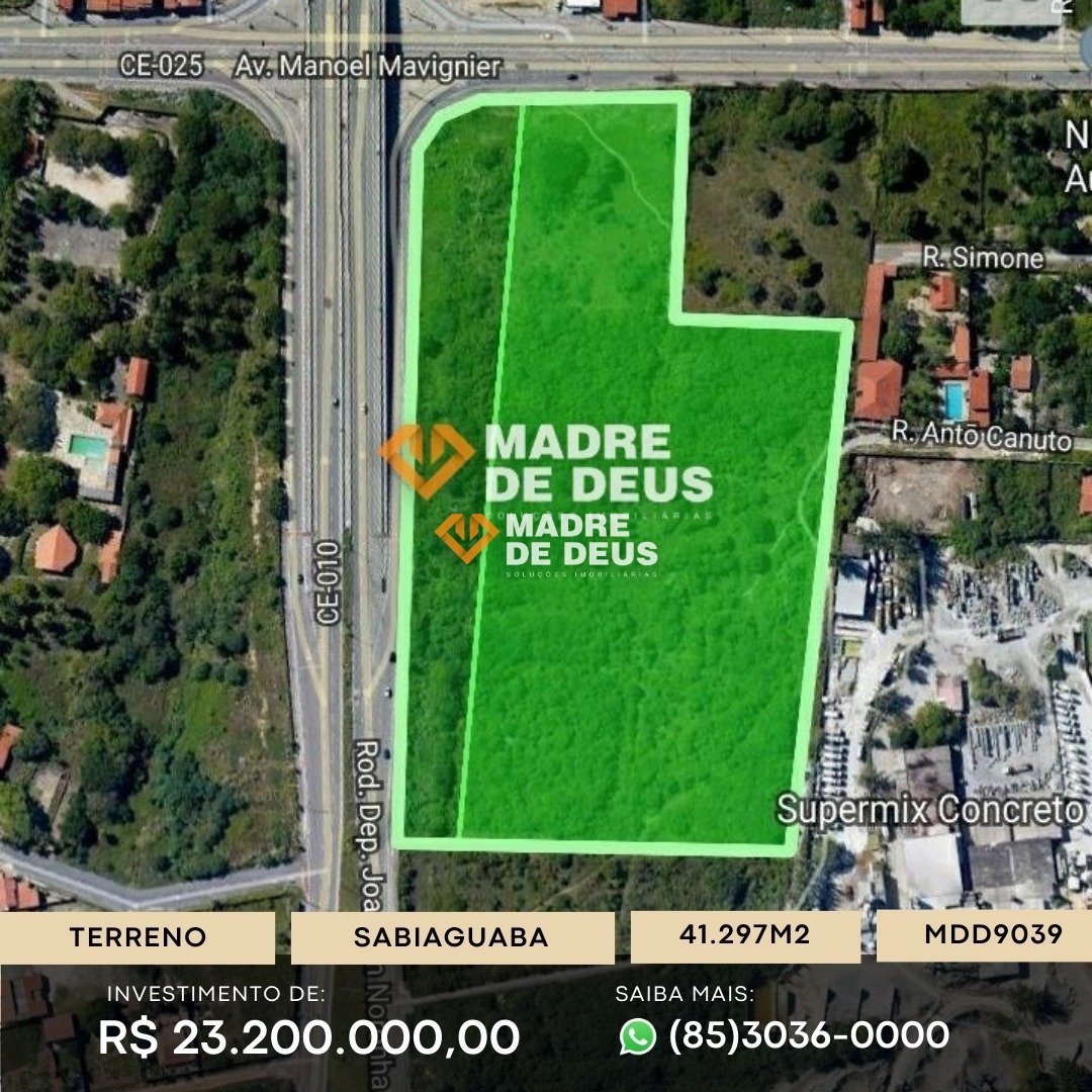 Ótimo terreno de esquina! Localizado na Avenida Manoel Mavigner esquina com CE 010. Com 41.297 m² de área total. Com projeto de viabilidade comercial e residencial. Agende agora mesmo sua visita!
