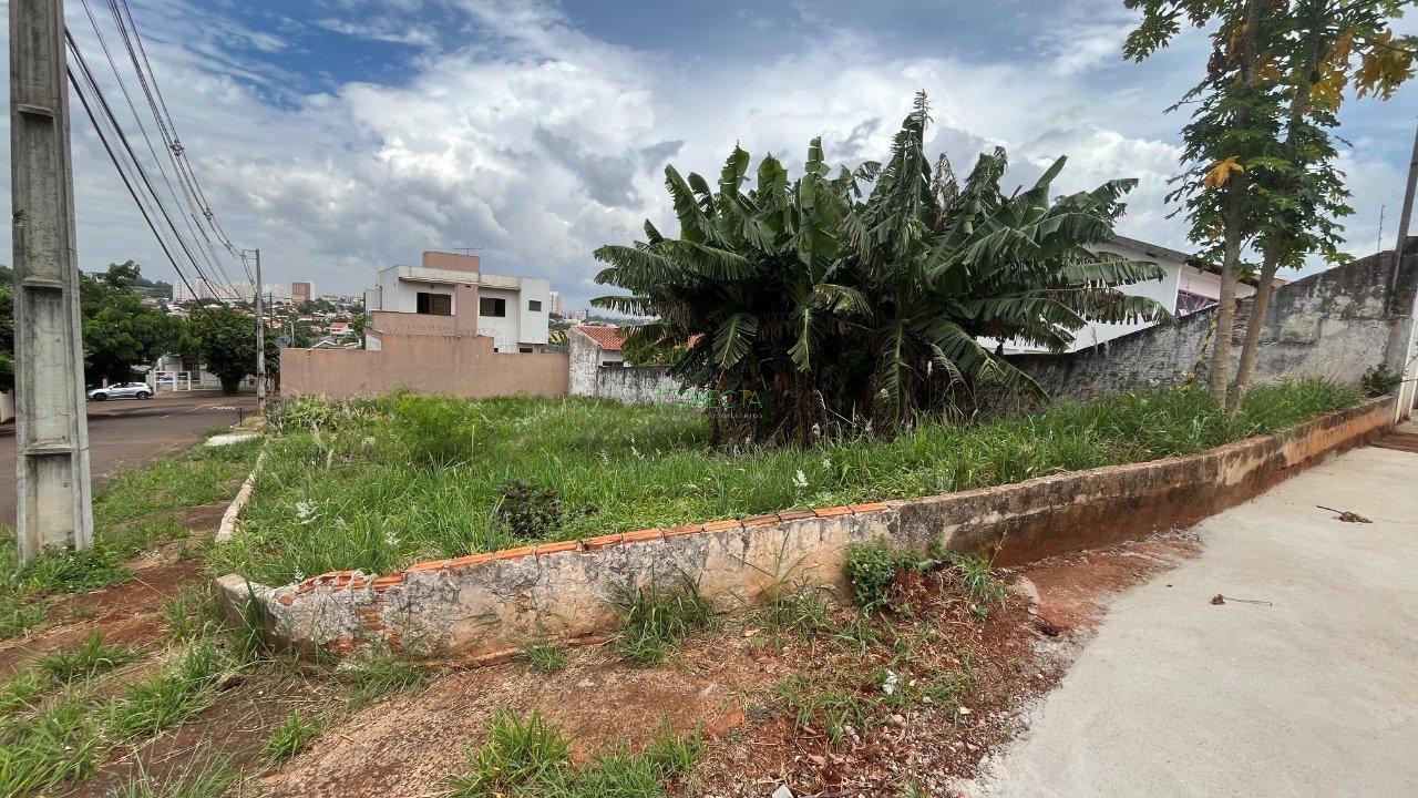 Terreno de esquina com 382,26 m² total, próximo da Av. Maringá, localizado em região residencial.