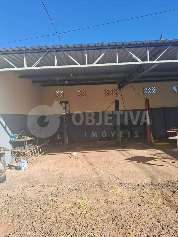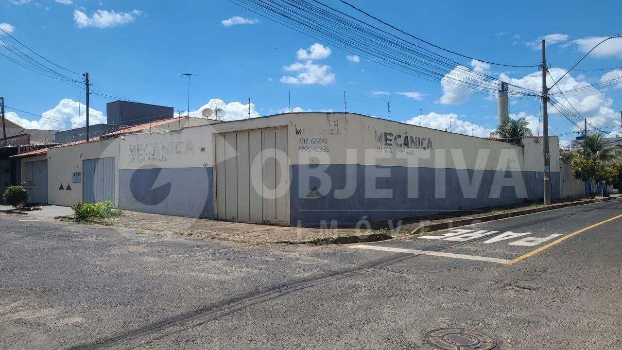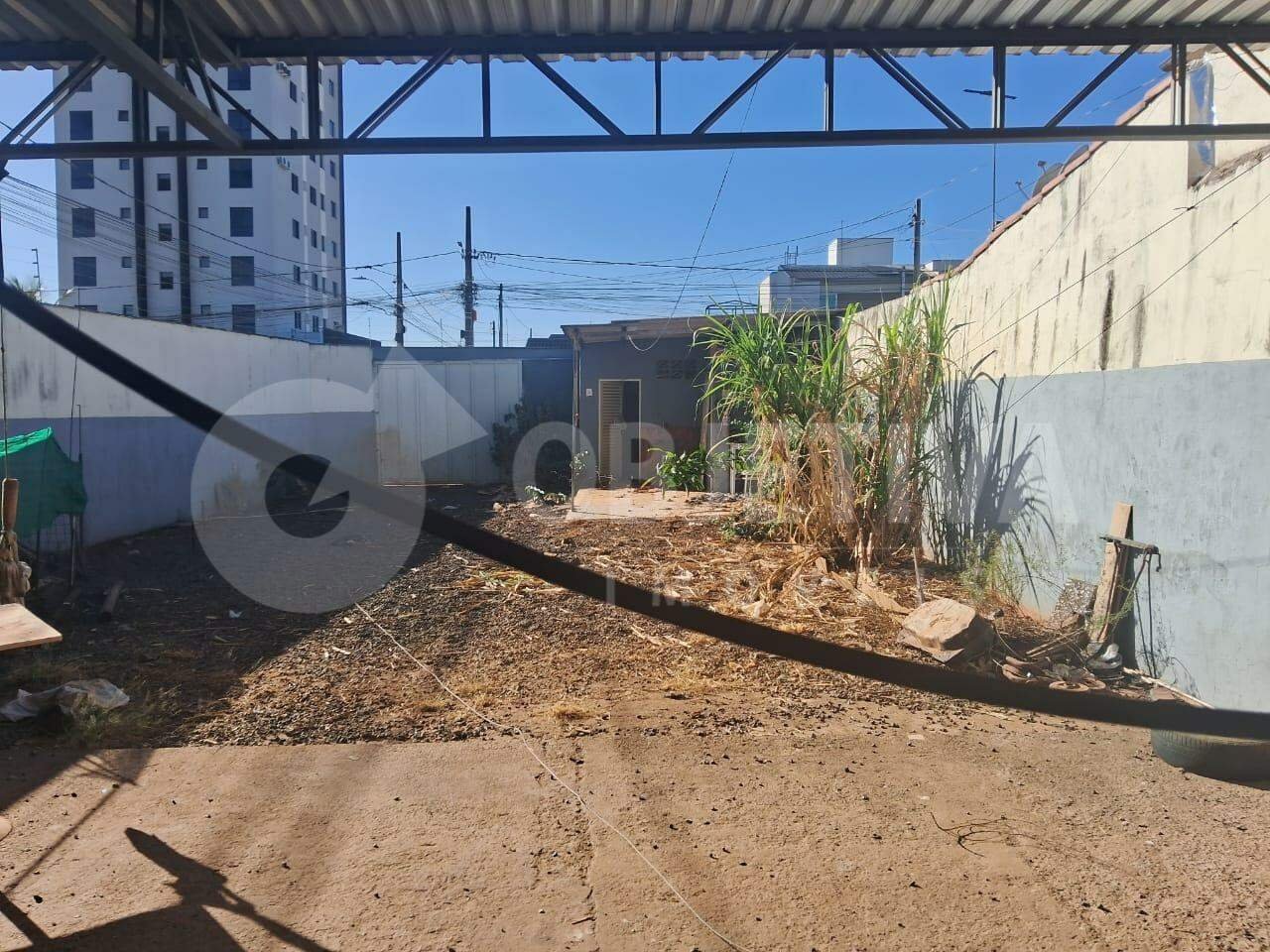 Um terreno de esquina medindo 10x30 = 300m² de área total localizado próximo ao hospital municipal, com uma parte coberta por estrutura metálica e com 98,46 m² de área construída.