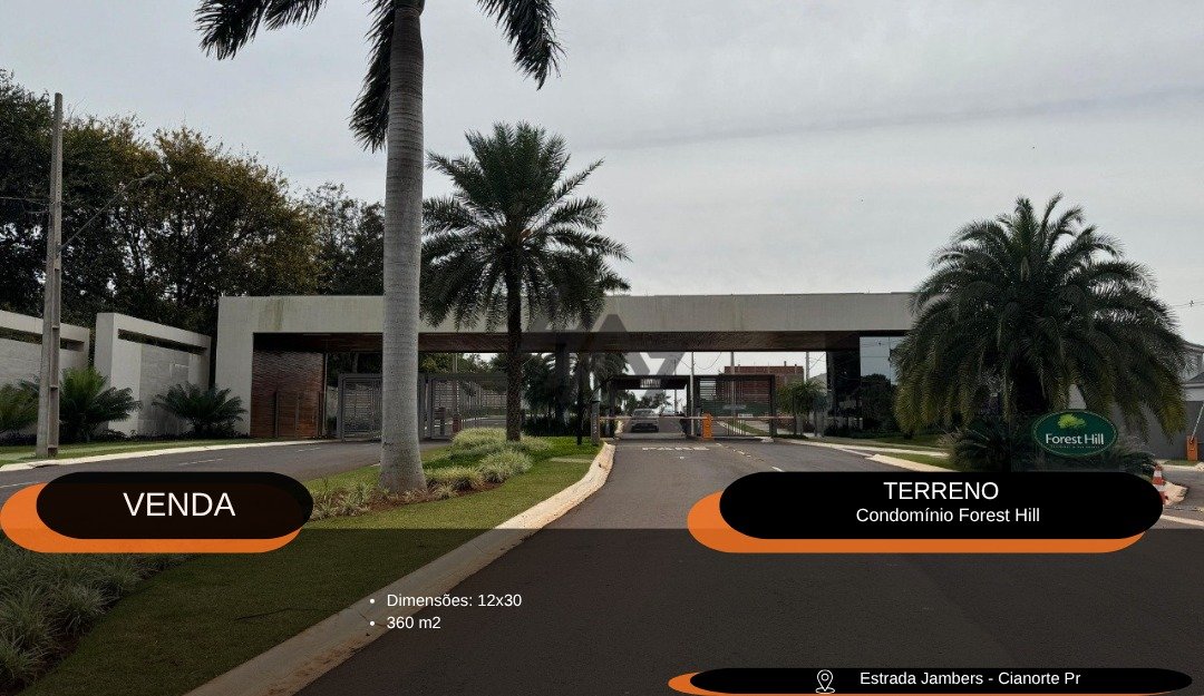 **Descrição do Imóvel: Lote em Forest Hill - Cianorte/PR** Apresentamos uma oportunidade única de adquirir um terreno localizado na charmosa Rua Sherwood, 159, no bairro Forest Hill, em Cianorte-PR. Este lote, com área total de 0m², oferece um espaço em branco para a criação do seu projeto dos sonhos, seja para construção de uma residência, uma área de lazer ou um investimento estratégico. **Principais Características:** - **Localização Privilegiada:** Situado em um dos bairros mais desejados de Cianorte, o Forest Hill é conhecido por sua tranquilidade e infraestrutura de qualidade, proporcionando fácil acesso a serviços essenciais, como escolas, supermercados e áreas de lazer. - **Potencial de Valorização:** Com o crescimento constante da região, este terreno representa uma excelente oportunidade de investimento, com potencial de valorização a médio e longo prazo. - **Flexibilidade de Uso:** A área é ideal para a construção de uma casa personalizada, permitindo que você crie um lar que atenda a todas as suas necessidades e desejos. Este lote é uma canvas em branco, pronto para receber a sua visão. Não perca a chance de transformar esse espaço em um lugar que reflete o seu estilo de vida. Entre em contato conosco para mais informações e agende uma visita.